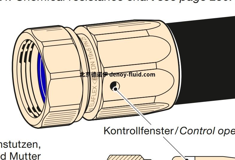 ELAFLEX MX 內(nèi)螺紋軟管接頭符合 EN 14420-5 標(biāo)準(zhǔn),帶有可重復(fù)使用的擠壓鋁 SPANNFIX 安全綁定。鎖定銷和鉸鏈銷由不銹鋼制成。標(biāo)稱壓力高達(dá) 25 bar。耐化學(xué)性