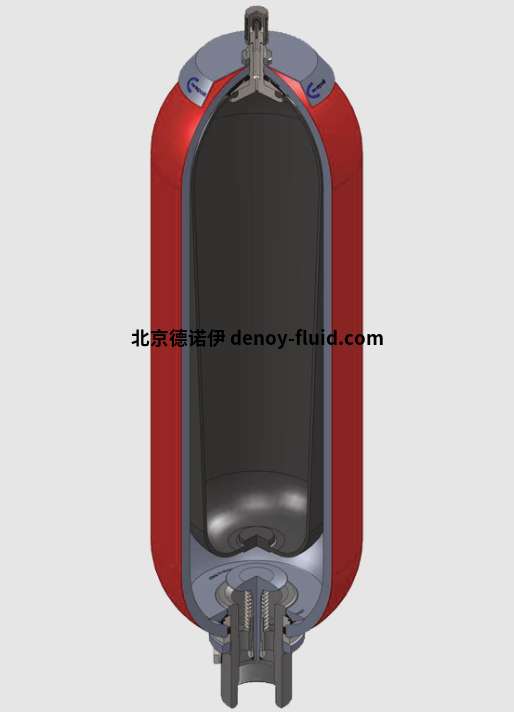 蓄能器通過安裝在容器內(nèi)部的彈性氣囊細(xì)分為氣體側(cè)和流體側(cè)。